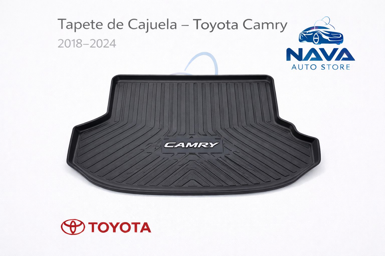 Application: Toyota Camry 2018–2024 Technical Description:Thermo-formed rubber trunk mat, custom-designed to fit precisely. Protects against liquids, dust, and everyday wear. Easy to clean with a non-slip surface.